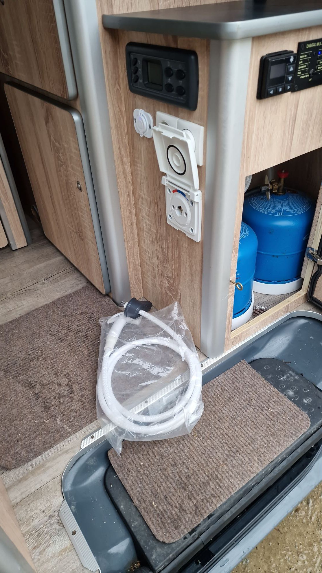 – Ballon eau chaude (3L) avec mitigeur douchette extérieur + cabine de douche extérieur (Quechua)